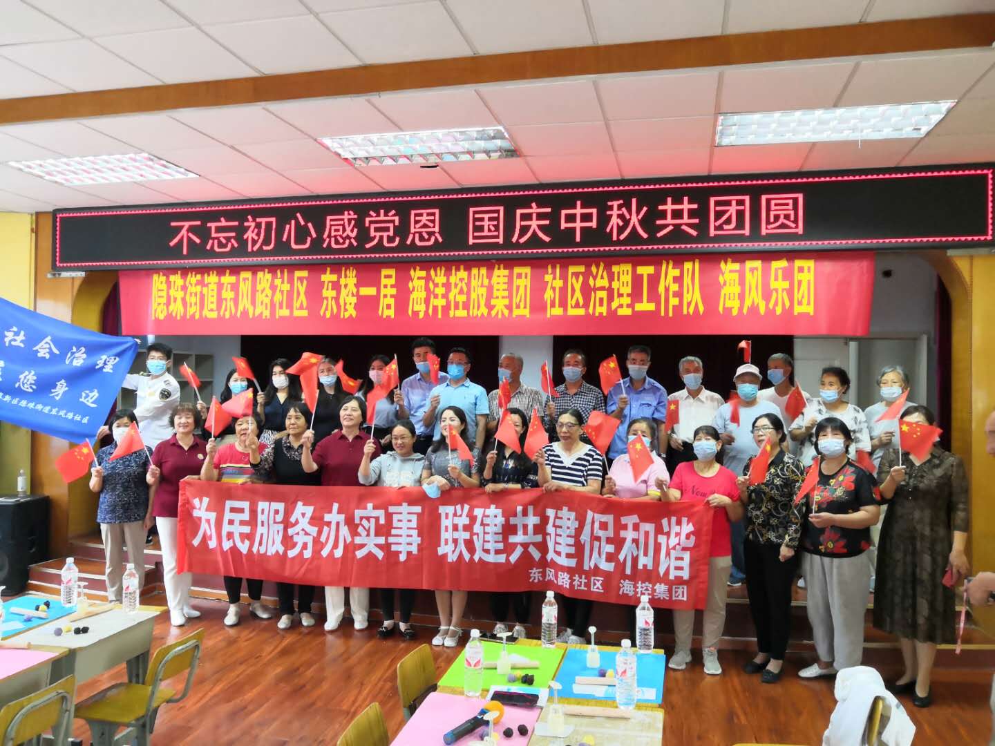 為進一步弘揚中華民族傳統優秀文化,厚植家國情懷、培育精神家園,推動建設美麗和諧社區,9月25日下午,海控集團黨委與“聯建共建”單位隱珠街道東風路社區聯合開展了“我們的節日:中秋節”主題活動暨“歡度國慶感黨恩、中秋月餅“奏”團圓”主題黨日活動。