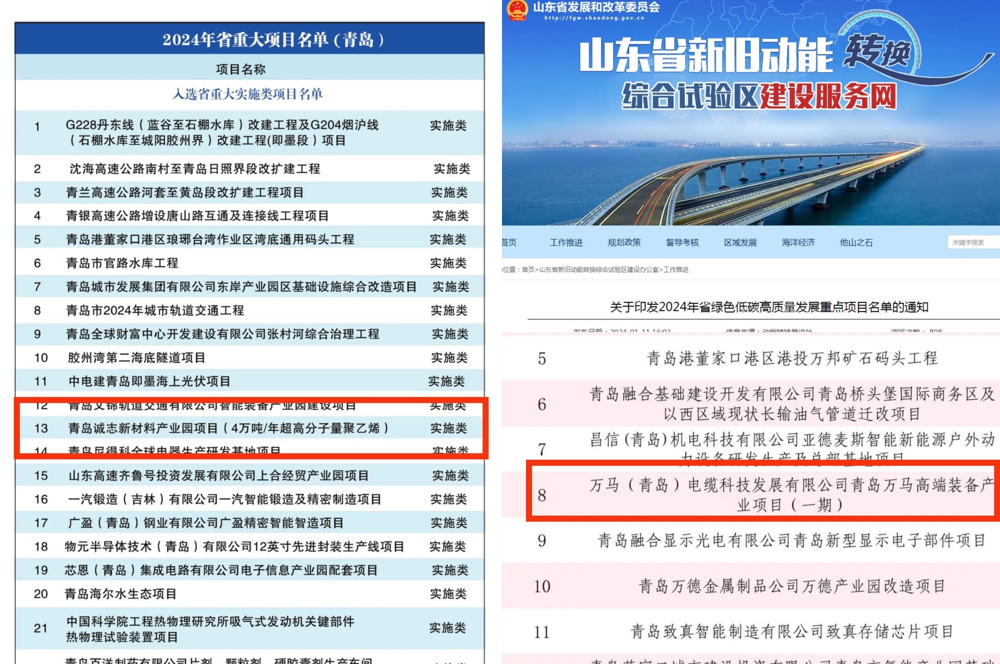 ▲山東省2024年重大項目名單和省綠色低碳高質(zhì)量發(fā)展重點項目名單